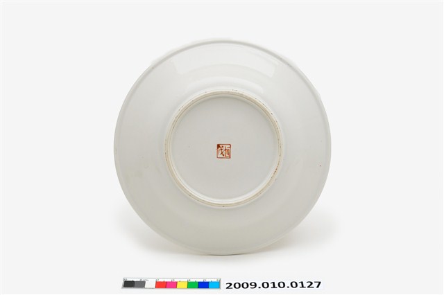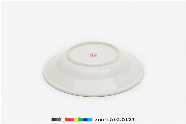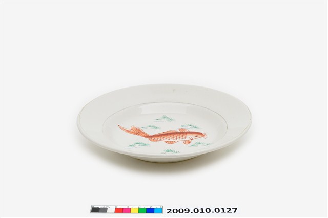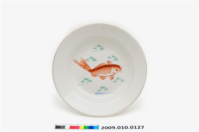 2009.010.0127 手繪胭脂紅釉水波魚紋圓盤