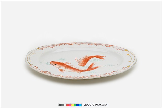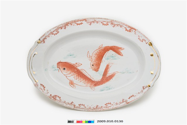 2009.010.0130 印花赤繪雙魚紋橢圓盤