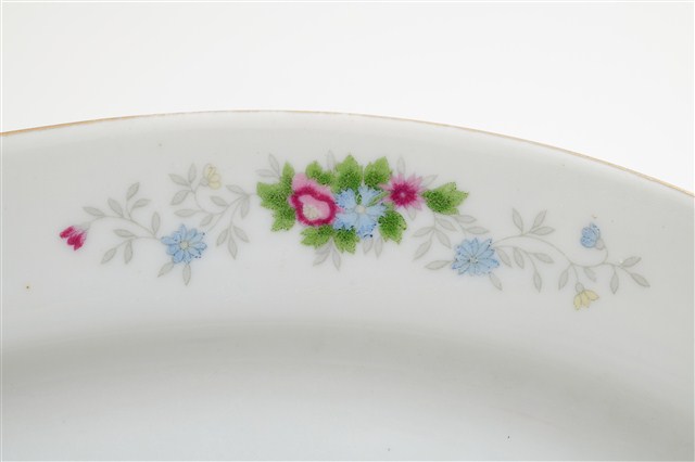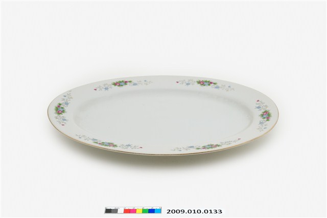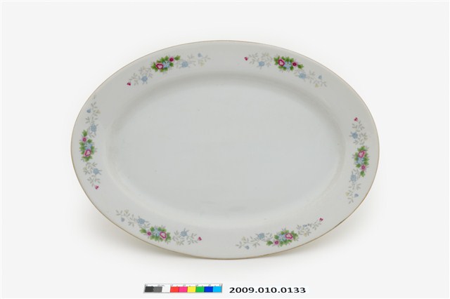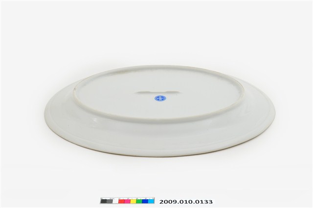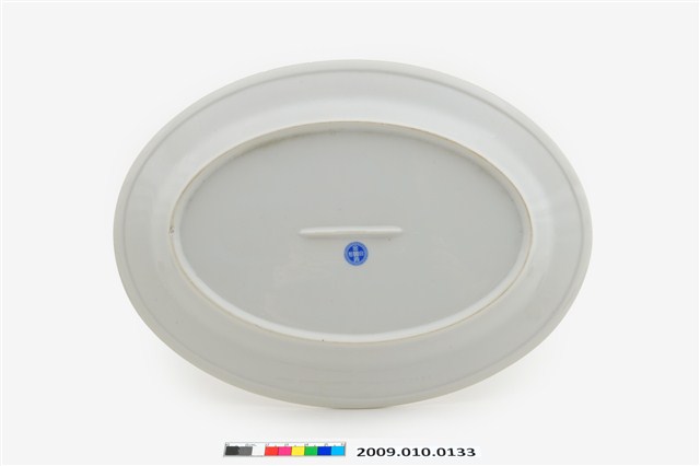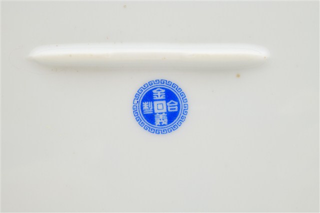 2009.010.0133 白瓷印花花卉紋「金義合」款橢圓盤
