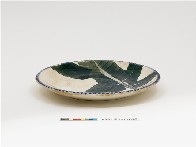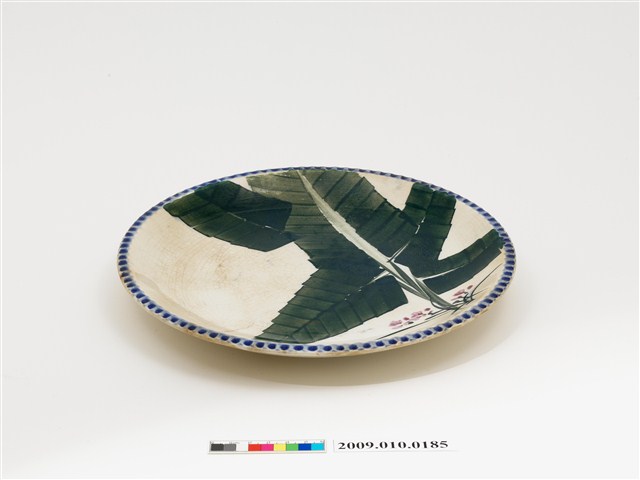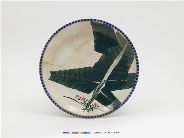2009.010.0185 青花綠彩蕉葉蘭花紋盤