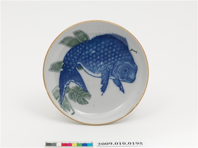 2009.010.0195 青花綠彩印花鯉魚紋碟