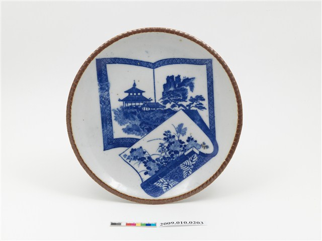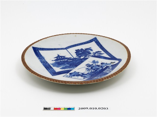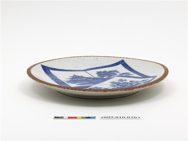 2009.010.0203 青花山水樓閣花卉紋盤
