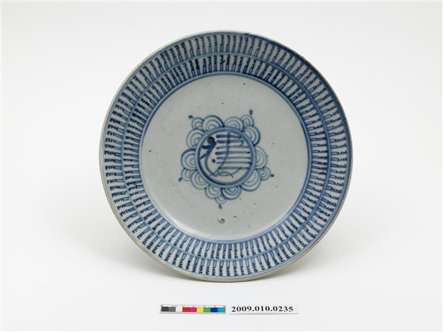2009.010.0235 青花仿梵字福壽紋盤