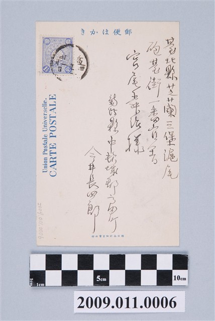 臺北縣芝蘭三堡滬尾砲臺街一番官舍宮尾舜治樣新瀉縣中??郡乃田町今井長四郎
