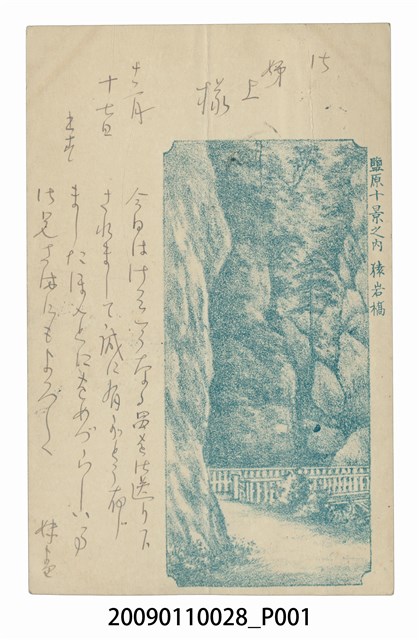 2009.011.0028 寄與宮尾豐子鹽原十景之內猿岩橋明信片