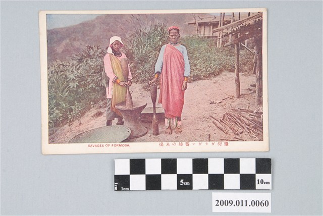2009.011.0060 搗米的泰雅族卡奧灣群婦女