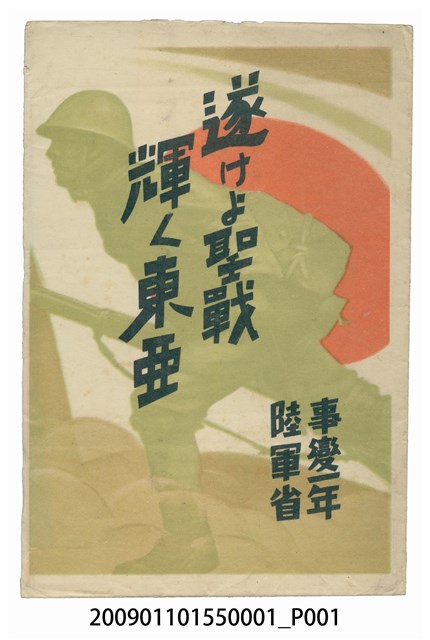 陸軍省發行完成聖戰榮耀東亞事變一年封套