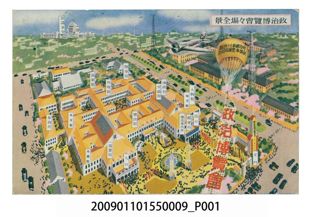 1.此圖為政治博覽會場的鳥瞰圖及配置圖。