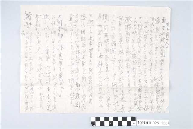 1.根據2009.011.0266 其他人寄給相同階級跟人名重松藤吾的訊息,應該是明治時期的信件。 2.寄信人丸山久吉信中關心重松藤吾,在臺灣注意飲食及身體。並自述自己9月16日起去三週的勤務演習。 3.末了日期為10月18日。