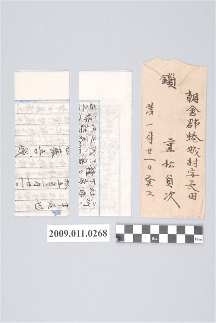 臺南守備步兵第十二大隊第三中隊重松藤吾殿親展手信朝倉郡蜷城村字長田重松貞次?一月廿一日發ス