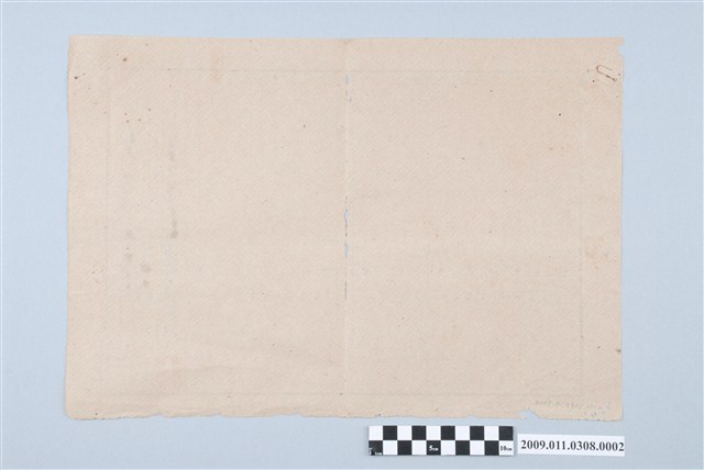 臺南州嘉義市豐田家戶籍謄本第2頁,正面為空白表格,右側有嘉義警署之抄錄許可文字(手寫字跡夾雜印章文字),但文字因濕氣而模糊不清難以辨識「為抄本八戶口調至...」,句尾嘉義警察署長中川真太郎之簽名與下方方形朱印清晰可辨,背面空白。