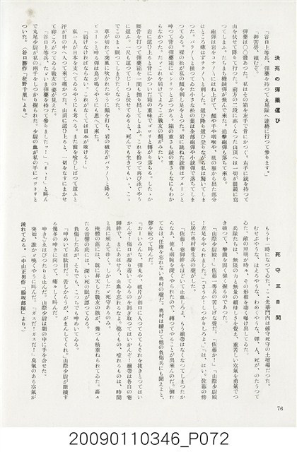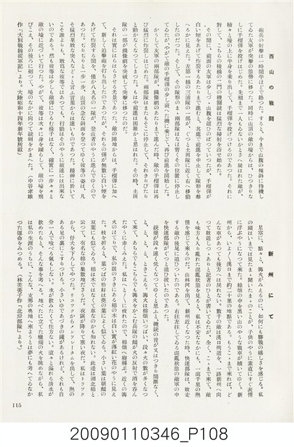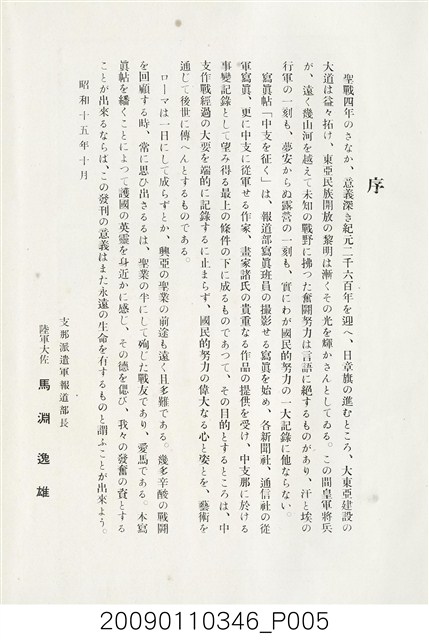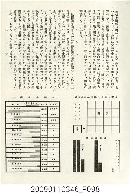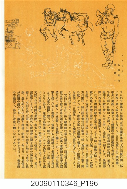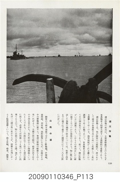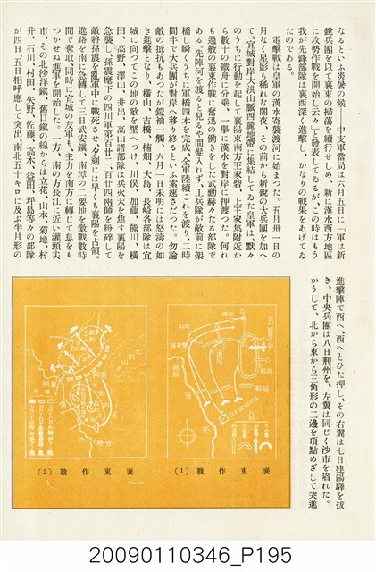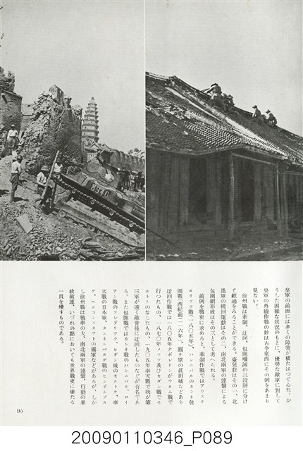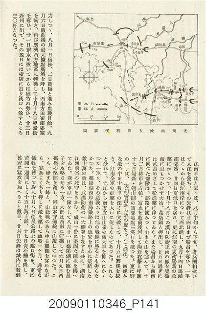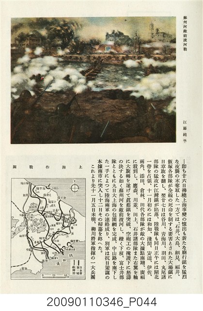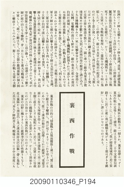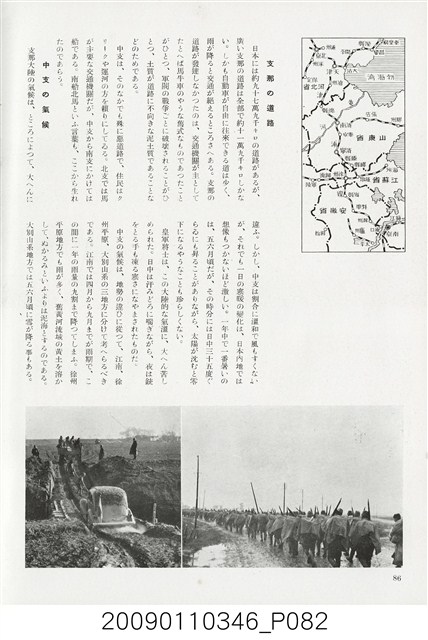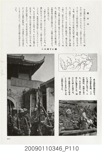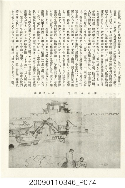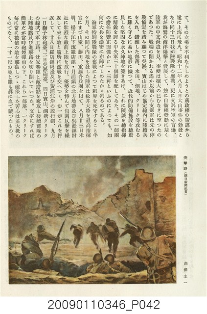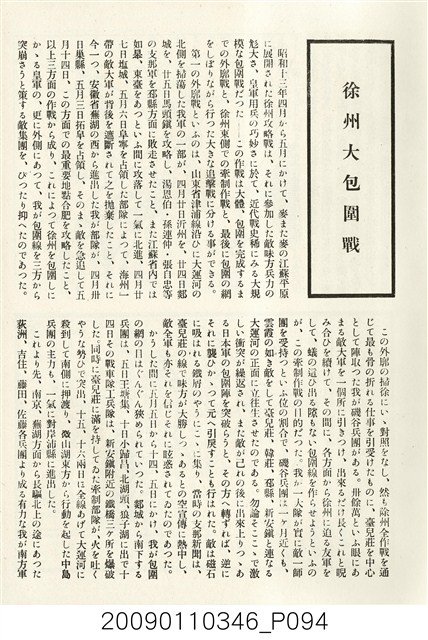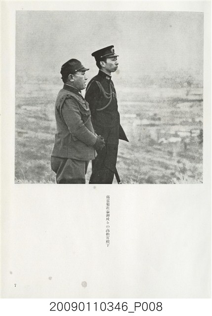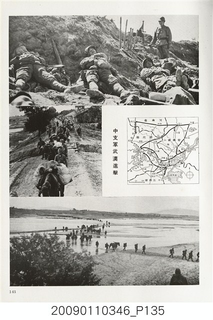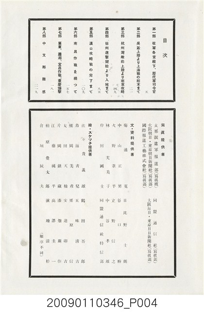 2.目次:第一部 從軍各宮殿下,歷代軍司令官(頁5)。第二部自吳淞至上海戰結束(頁21)。第三部杭州灣敵前登陸至南京攻略(頁49)。第四部徐州進擊開始至入城(頁85)。第五部 至漢口攻略戰完成(頁109)。第六部 南昌作戰(頁157)第七部襄東、贛湘、宜昌作戰、重慶轟炸(頁181)。第八部 華中雜感(頁219)。