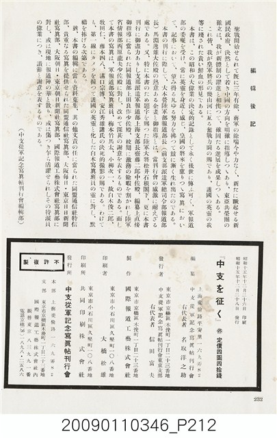 3.照片提供者:支那派遣軍報道部(寫真班)、大阪朝日、東京朝日新聞社(寫真部)、國際報道工藝株式會社(寫真部)、同盟通信社(寫真部)、大阪每日、東京日日新聞社(寫真部)
