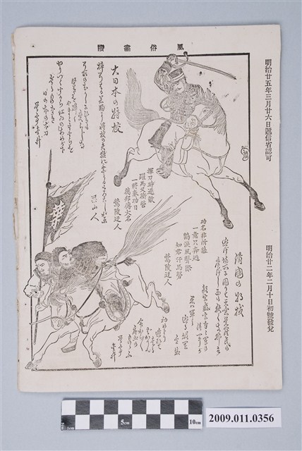 《日清戰爭圖繪》為《風俗畫報》報導甲午戰爭(日本稱為「日清戰爭」)臨時增刊所出版之專號,自第5編起改名為《征清圖繪》(第8編之後封面標題為《征清圖會》),總計有10編,即第78、80、81、82、84、86、87、?、92、96號(明治27年9月25日至明治28年7月25日)。甲午戰爭係1894年日本為了拓展北方勢力,出兵朝鮮半島,清朝為維護其對朝鮮藩屬國的地位,出兵反制,於是爆發戰爭。同年7月25日由豐島海戰揭開序幕、8月1日雙方正式宣戰,歷經牙山之戰、平壤之戰、黃海之戰、威海衛之戰、澎湖之戰等陸戰及海戰交鋒,至1895年4月17日雙方簽署「馬關條約」,清朝割讓遼東半島及臺灣、澎湖,並賠款2億兩。
