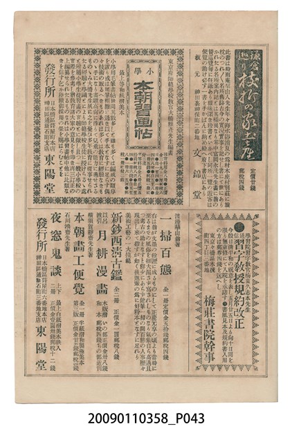 全書內文32頁,插畫13幅(含封面圖),附有明治天皇肖像圖、紅十字醫院清傷兵圖、澎湖馬公城拱辰門圖、澎湖列島圖、金州城內商人市場圖…等插圖,每本定價金拾錢。