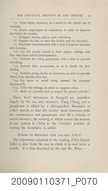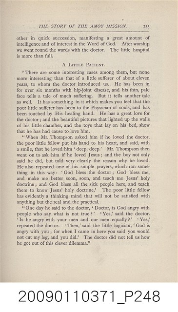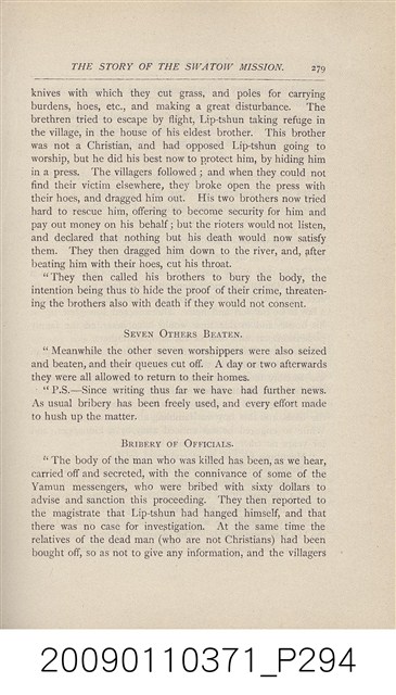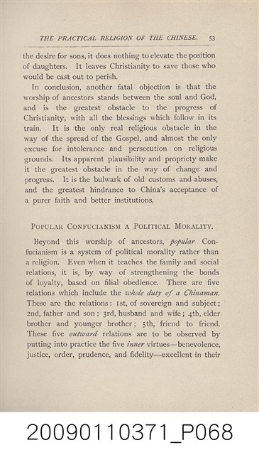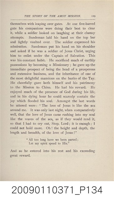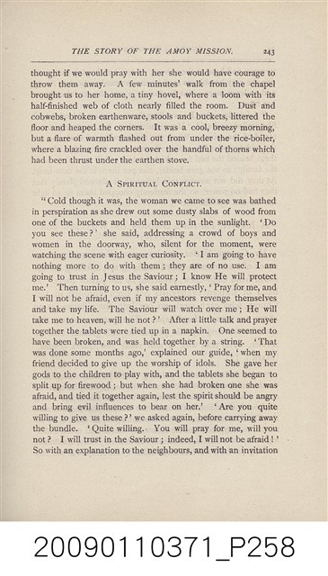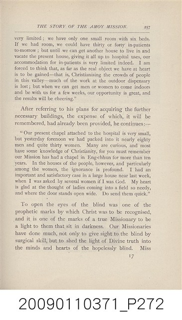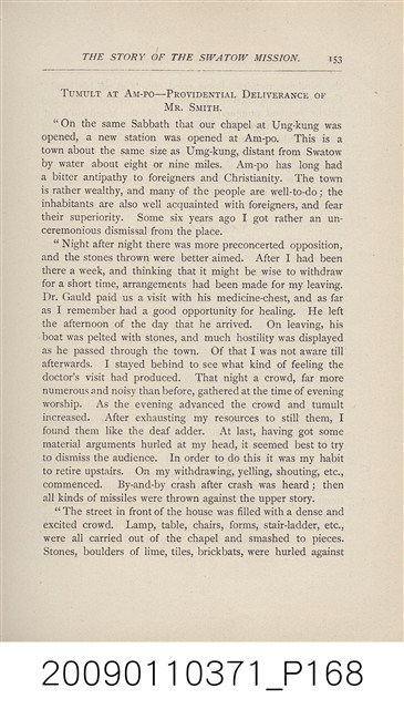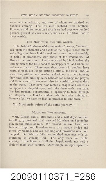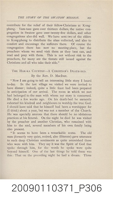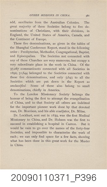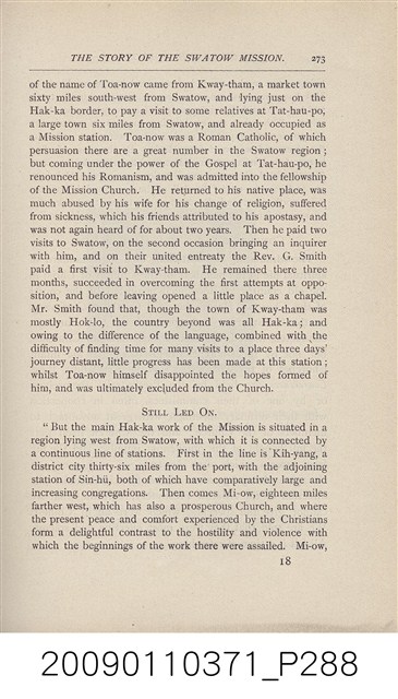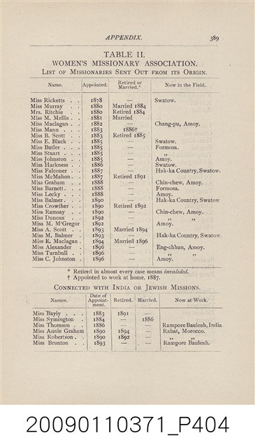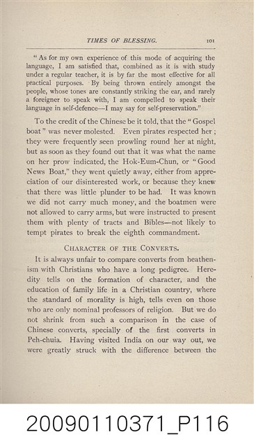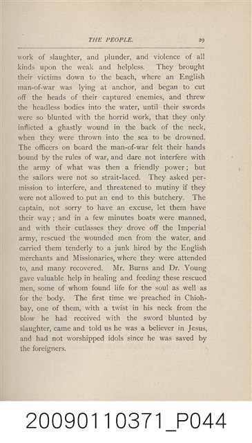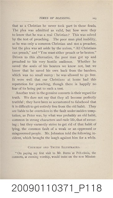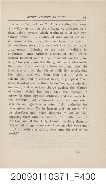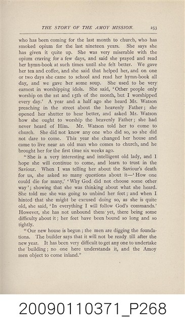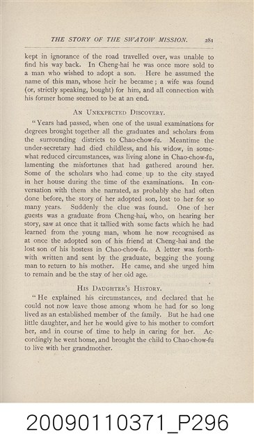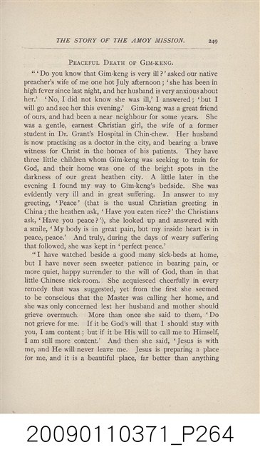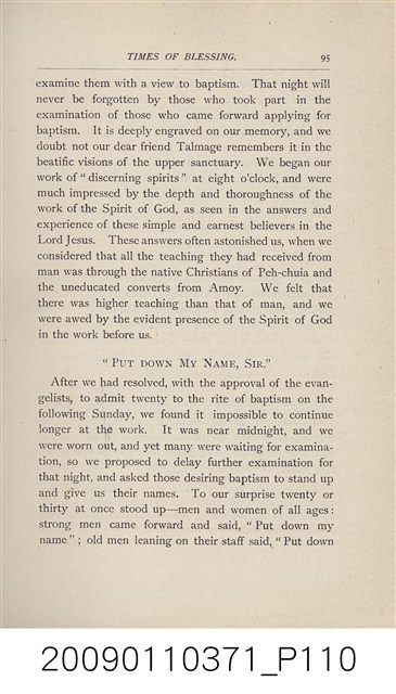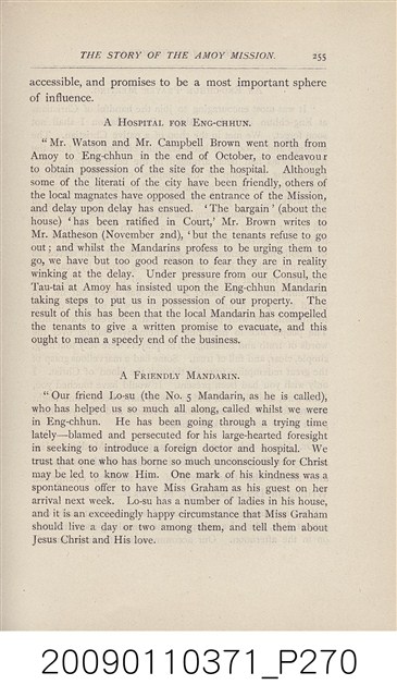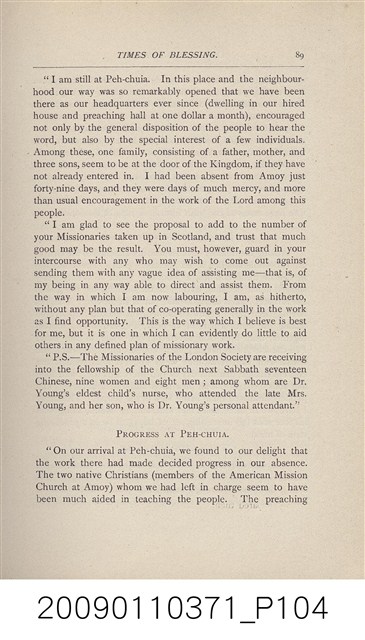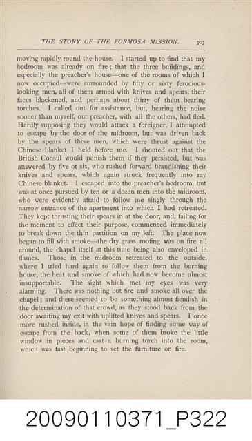 1.《中國與臺灣:英國長老教會傳教的故事》(China and Formosa: The Story of the Mission of the Presbyterian Church of England)一書,James Johnston(1819-1905)牧師撰,1897年英國倫敦Hazell, Waton, & Viney公司出版,附有廈門、汕頭、臺灣、新加坡4張地圖,及多張黑白照片與插圖,全書約400頁,內容主要記錄英國長老教會自1847年起50年間,在中國廈門、汕頭、臺灣、新加坡等地傳教的情形及當地的人民、風俗。