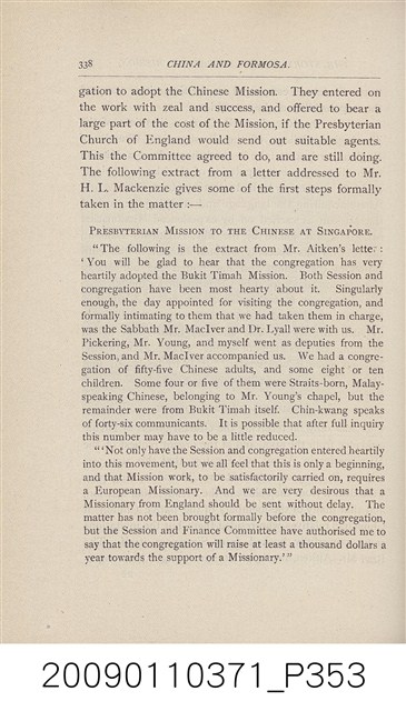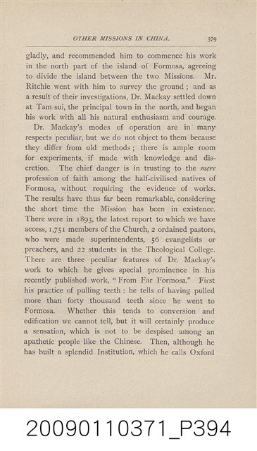 China and Formosa: The Story of the Mission of the Presbyterian Church of England