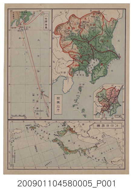 2009.011.0458.0005 大日本雄辯會講談社發行《各府縣分解式大日本板地圖》第4幅〈關東地方及小笠原諸島及大日本總圖〉