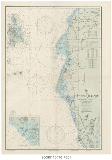 2009.011.0470 美國海軍部發行〈十五萬分一亞洲日本-臺灣西海岸及澎湖水道〉