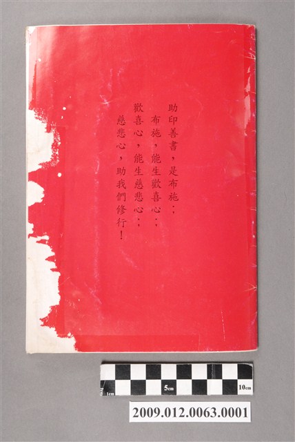 本件為《供奉大梵天王(四面佛)要訣》,紅色書皮,封面為一尊四面佛神像,左側直書「供奉大梵天王(四面佛)要訣」,下方橫書「財降善門‧佛渡有緣」,書籍內容為四面佛之簡介。封底寫「助印善書,是布施;布施,能生歡喜心;歡喜心,能生慈悲新;慈悲心,助我們修行!」四面佛即為梵天,在印度教中,被尊為「造物主」、「創造之神」,與毗濕奴、濕婆並列為三大主神。在東南亞的泰國、柬埔寨、臺灣等地可見到供奉四面佛,此四面代表能賜福功名、感情、財富、健康等好運。