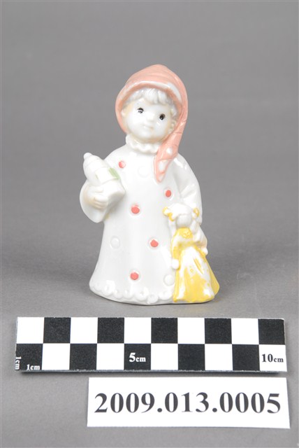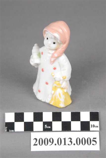 2009.013.0005 彩繪抱奶瓶睡衣孩童陶瓷玩偶