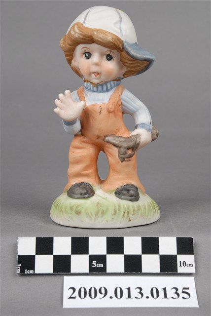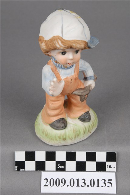 2009.013.0135 彩繪持彈弓男孩陶瓷玩偶