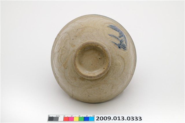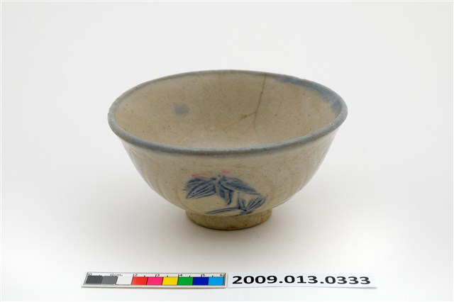 2009.013.0333 青花粉紅彩竹葉花鳥紋碗