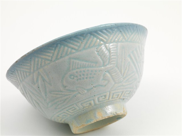 2009.013.0341 淡藍釉花卉魚紋淡青碗