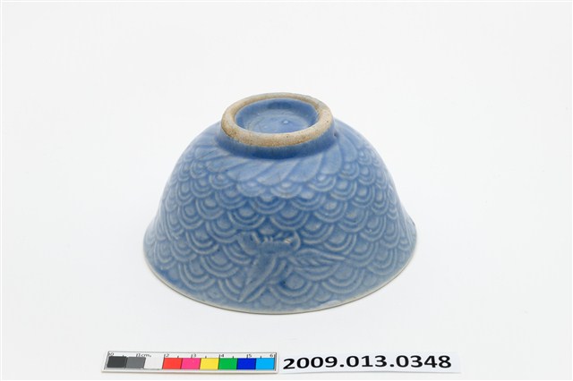 2009.013.0348 藍釉波濤飛鳥紋淡青碗