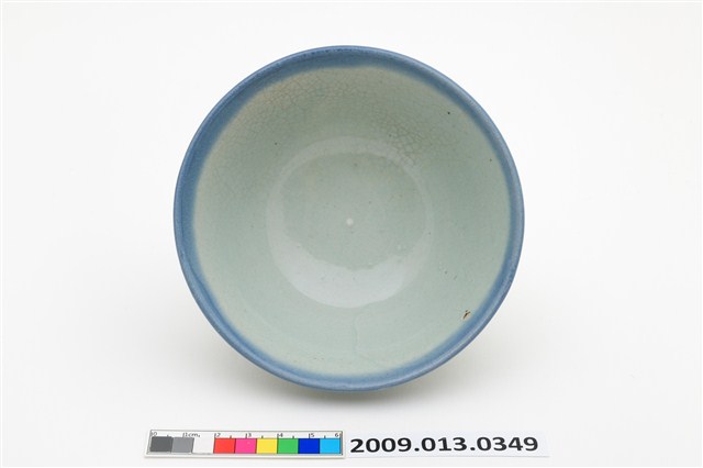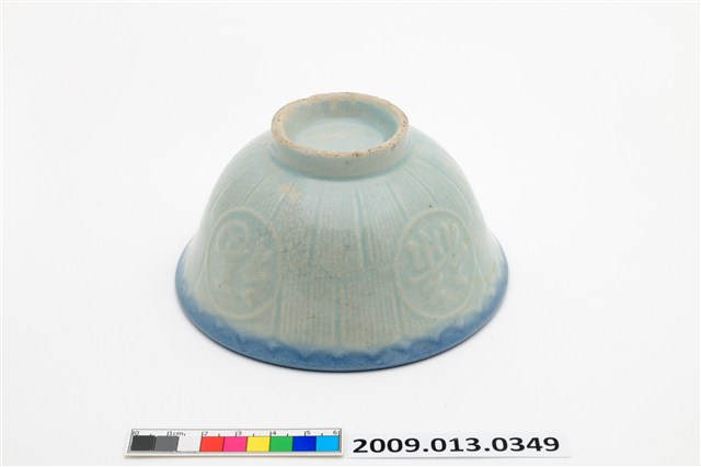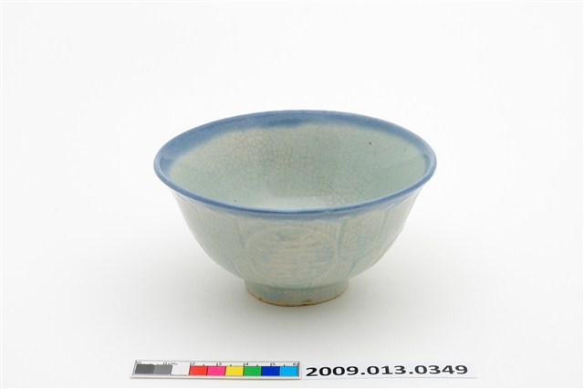 2009.013.0349 淡藍釉福祿壽囍字紋淡青碗