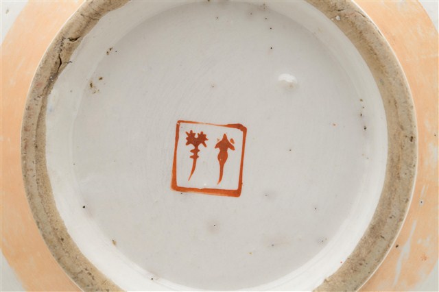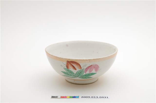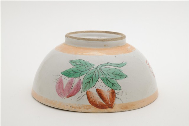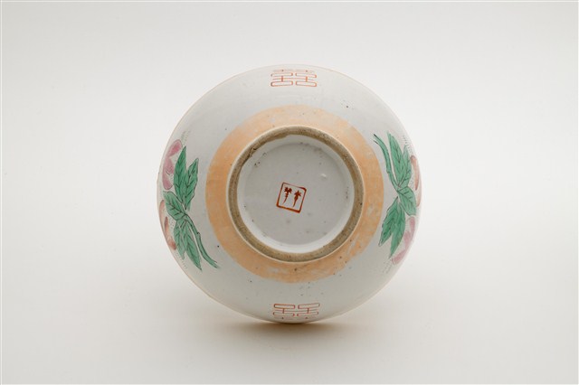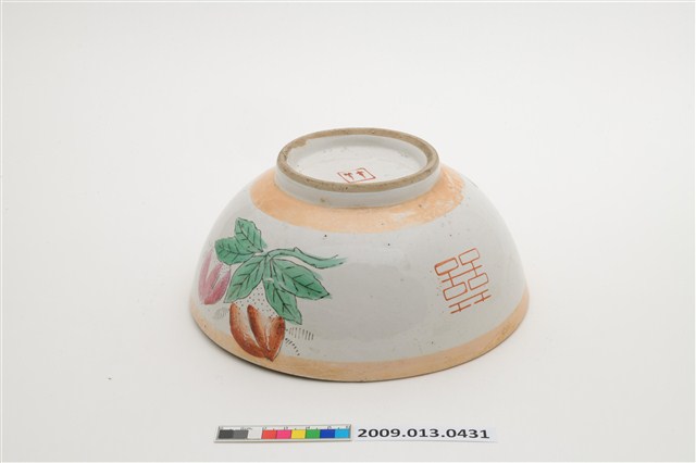 2009.013.0431 彩瓷黃閃光釉仙桃囍字紋大碗