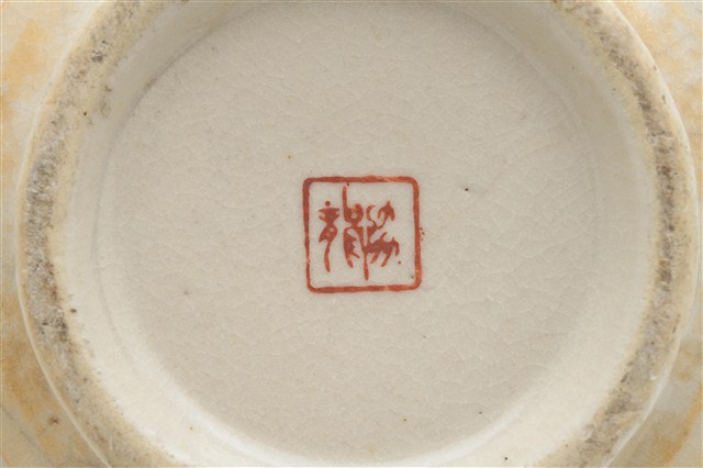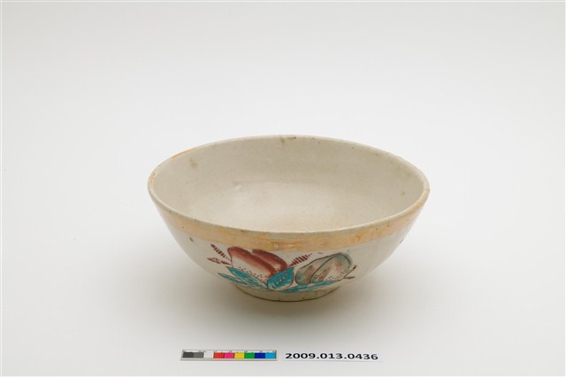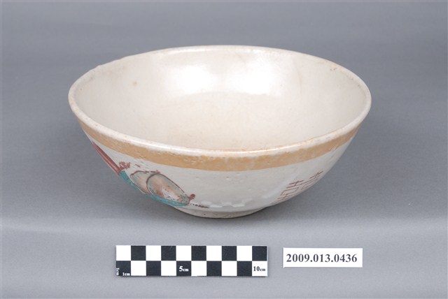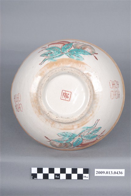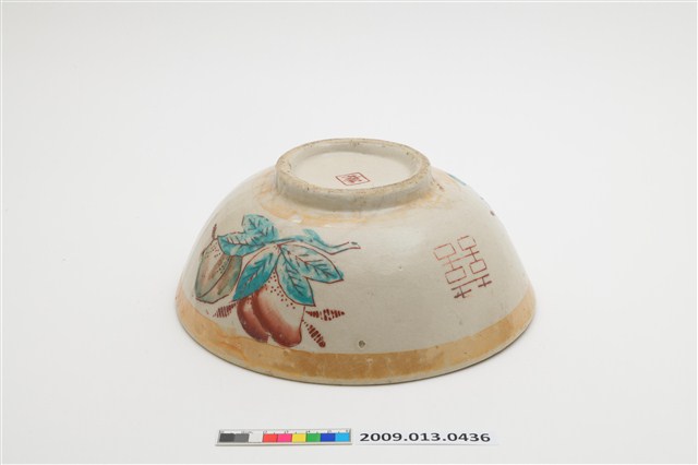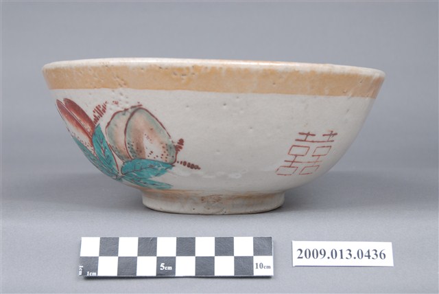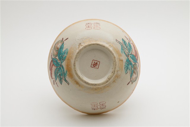 2009.013.0436 彩瓷黃閃光釉仙桃囍字紋大碗