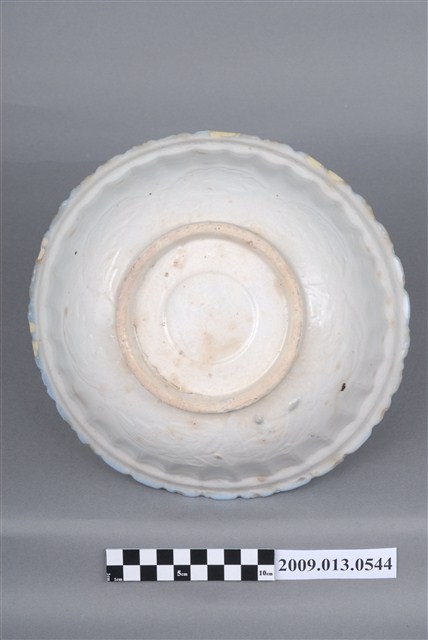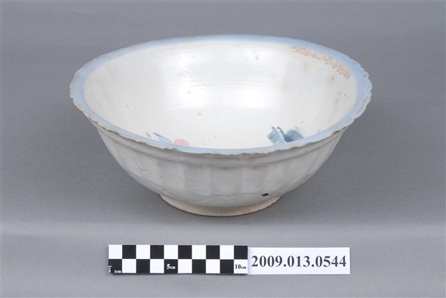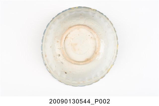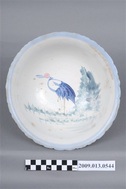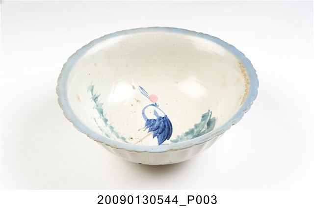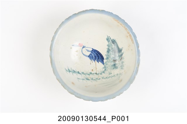 2009.013.0544 彩繪丹頂鶴綠樹紋菱花口碗