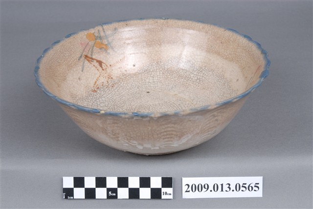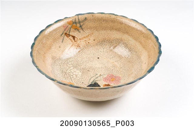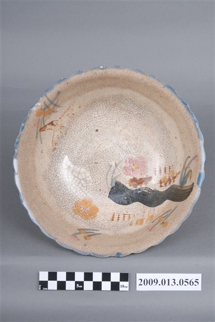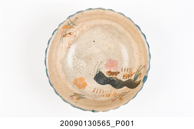 2009.013.0565 彩繪印花花鳥紋菱花口碗