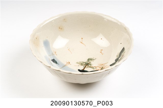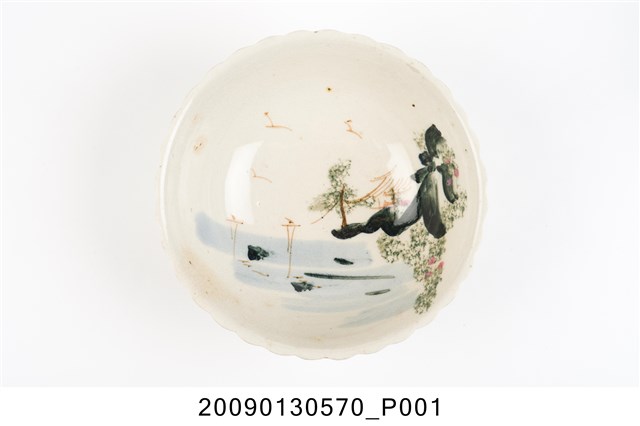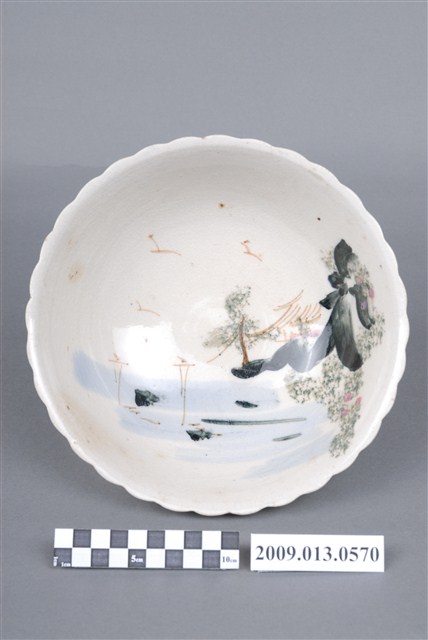 2009.013.0570 彩繪湖水風景紋菱花口碗