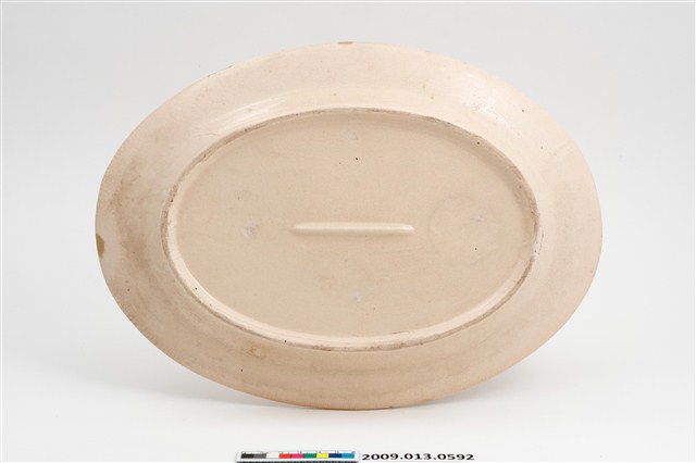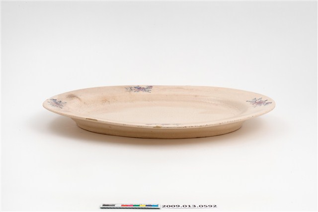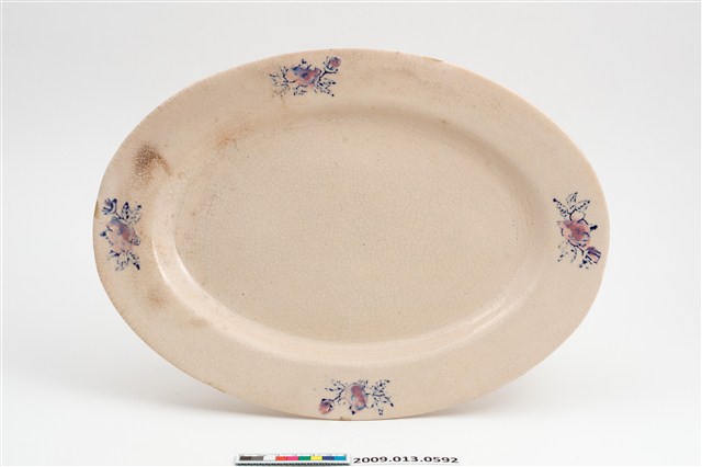2009.013.0592 青花粉紅彩釉印花薔薇紋橢圓盤