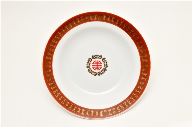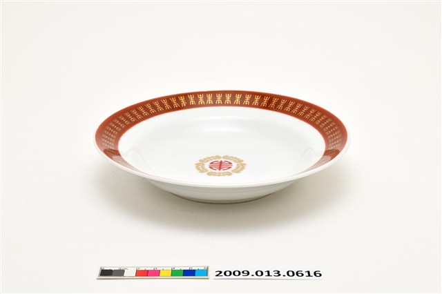 2009.013.0616 白瓷紅釉印花壽字紋圓盤