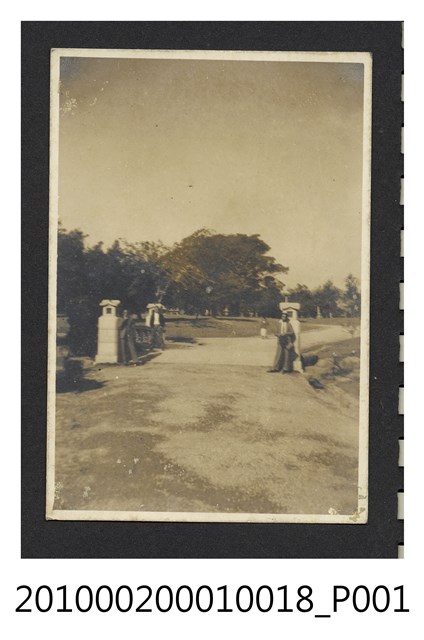 東天下先生借來一台照相機,因此到臺南神社外苑﹝即今忠義國小﹞拍照,照片內共有三位男子,分別站立在石橋三個石燈柱前,左前方為東天下,另外右方二男子著西裝。