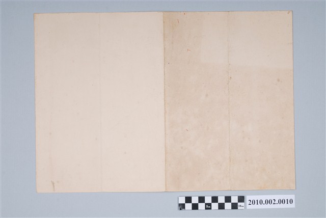 1.本物件為昭和3年(1928)9月8日的講習證書,由片山三郎所發,取得證書者為東天下,其通過臺灣產業組合協會臺南州支會第四回產業組合實務講習會之科目,科目分別為產業組合概論、產業組合經營論、產業組合簿記、官廳手續、手形法、統計實務與書類整理。片山三郎時任臺灣產業組合協會臺南州支會長與臺南州知事,其為正五位勳等。本文物紙質泛黃,紙張有皺褶現象。片山三郎姓名下方蓋有其職章。