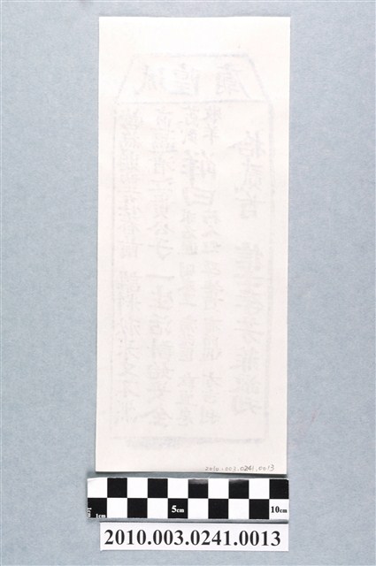 本件為木雕印版所印刷的宜蘭城隍廟第拾貳首之籤詩,籤詩頭刻有「城隍廟」,下方詩句「營為期望在春前,誰料秋來又不然;直遇清江貴公子,一生活計始安全。」以及籤詩序號、內容、歷史典故、諸事吉凶、捐獻者姓名。宜蘭城隍廟創立於嘉慶18年(1813),主祀神城隍爺。一套籤的數量有36、60、100、120等等,籤詩普遍涵蓋人生面相的正負解釋,藉由解籤人或求籤人的主客觀判斷,解惑尋求化解之道,是民眾的一種心理諮商管道。