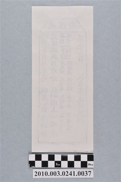 本件為木雕印版所印刷的宜蘭城隍廟第三十六首之籤詩,籤詩頭刻有「城隍廟」,下方詩句「功名富貴自能為,偶着仙鞭莫問伊;萬里鵬程君有分,吳山頂上好鑽龜。」以及籤詩序號、內容、歷史典故、諸事吉凶,由拔貢李逢時敬刊。宜蘭城隍廟創立於嘉慶18年(1813),主祀神城隍爺。一套籤的數量有36、60、100、120等等,籤詩普遍涵蓋人生面相的正負解釋,藉由解籤人或求籤人的主客觀判斷,解惑尋求化解之道,是民眾的一種心理諮商管道。