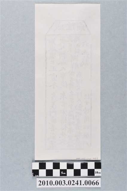 本件為木雕印版所印刷的宜蘭城隍廟第六五首之籤詩,籤詩頭刻有「城隍廟」,下方詩句「朔凨凜凜正穷冬,多羨門庭喜氣濃;更入新春人事後,眾言方得信先容。」以及籤詩序號、內容、歷史典故、諸事吉凶、捐獻者姓名。宜蘭城隍廟創立於嘉慶18年(1813),主祀神城隍爺。一套籤的數量有36、60、100、120等等,籤詩普遍涵蓋人生面相的正負解釋,藉由解籤人或求籤人的主客觀判斷,解惑尋求化解之道,是民眾的一種心理諮商管道。