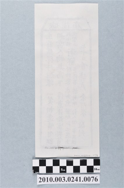 本件為木雕印版所印刷的宜蘭城隍廟第七十五首之籤詩,籤詩頭刻有「城隍庙」,下方詩句「生前結得好姻緣,一笑相逢情自親;相當人物無高下,得意休論富與貧。」以及籤詩序號、內容、歷史典故、諸事吉凶、捐獻者姓名。宜蘭城隍廟創立於嘉慶18年(1813),主祀神城隍爺。一套籤的數量有36、60、100、120等等,籤詩普遍涵蓋人生面相的正負解釋,藉由解籤人或求籤人的主客觀判斷,解惑尋求化解之道,是民眾的一種心理諮商管道。