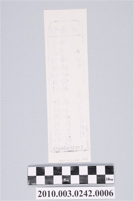 本件為木雕印版所印刷的宜蘭五結鎮安廟第伍首籤詩,籤詩頭刻有「鎮安廟」,下方有籤詩序號第伍首,內容「寶鏡團圓似月明,妍媸照得寫紅情;婚姻締結相偕老,舉子登科定顯榮。」由監生楊世彰敬刊。鎮安廟又稱二結王公廟,奉祀古公三王(柳、葉、英姓三位),1997年進行「千人移廟」所著名。一套籤的數量有36、60、100、120等等,籤詩普遍涵蓋人生面相的正負解釋,藉由解籤人或求籤人的主客觀判斷,解惑尋求化解之道,是民眾的一種心理諮商管道。