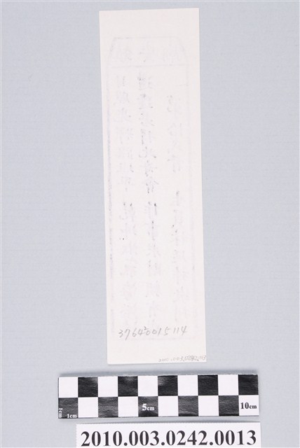 本件為木雕印版所印刷的宜蘭五結鎮安廟第拾弍首籤詩,籤詩頭刻有「鎮安廟」,下方有籤詩序號第拾弍首,內容「日照光輝路坦平,乾坤淑氣海澄清;遭逢若有此奇會,作事求財賴有成。」由生員林延祚敬刊。鎮安廟又稱二結王公廟,奉祀古公三王(柳、葉、英姓三位),1997年進行「千人移廟」所著名。一套籤的數量有36、60、100、120等等,籤詩普遍涵蓋人生面相的正負解釋,藉由解籤人或求籤人的主客觀判斷,解惑尋求化解之道,是民眾的一種心理諮商管道。