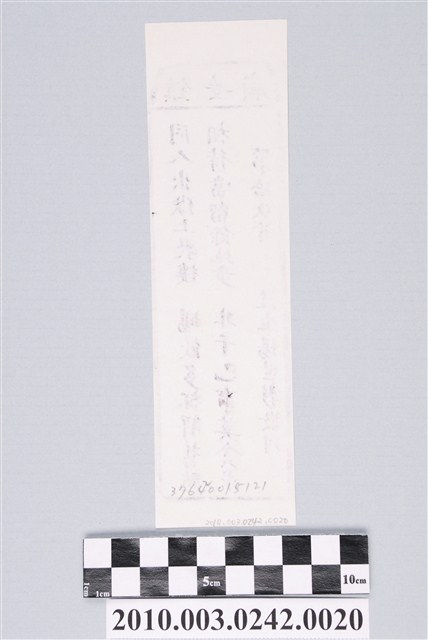 本件為木雕印版所印刷的宜蘭五結鎮安廟第拾玖首籤詩,籤詩頭刻有「鎮安廟」,下方有籤詩序號第拾玖首,內容「同人出獄上歌樓,暢欽多杯解舊愁;相待當留餘地步,非子巳事莫貪求。」由監生楊世彰敬刊。鎮安廟又稱二結王公廟,奉祀古公三王(柳、葉、英姓三位),1997年進行「千人移廟」所著名。一套籤的數量有36、60、100、120等等,籤詩普遍涵蓋人生面相的正負解釋,藉由解籤人或求籤人的主客觀判斷,解惑尋求化解之道,是民眾的一種心理諮商管道。