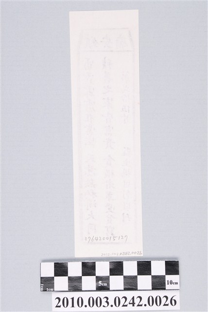 本件為木雕印版所印刷的宜蘭五結鎮安廟第弍拾伍首籤詩,籤詩頭刻有「鎮安廟」,下方有籤詩序號第弍拾伍首,內容「雷霆霹靂在當空,天意無私漙大同;積善之家皆富貴,貪橫者輩受貪窮。」由監生楊世彰敬刊。鎮安廟又稱二結王公廟,奉祀古公三王(柳、葉、英姓三位),1997年進行「千人移廟」所著名。一套籤的數量有36、60、100、120等等,籤詩普遍涵蓋人生面相的正負解釋,藉由解籤人或求籤人的主客觀判斷,解惑尋求化解之道,是民眾的一種心理諮商管道。