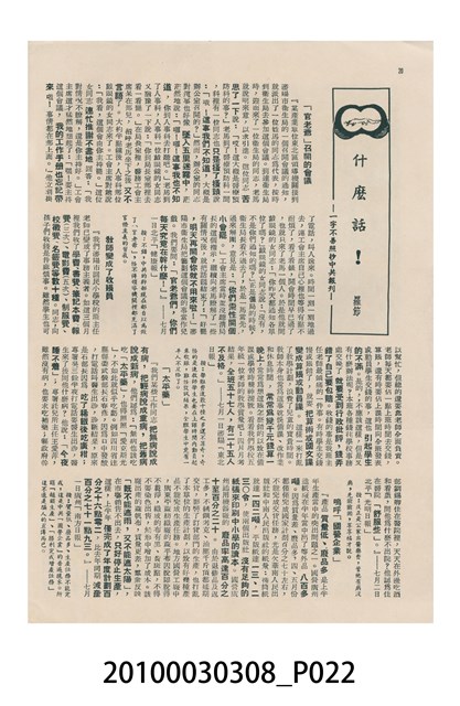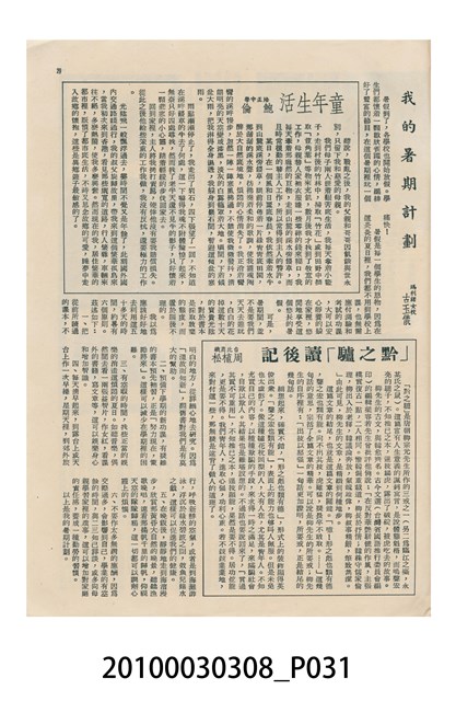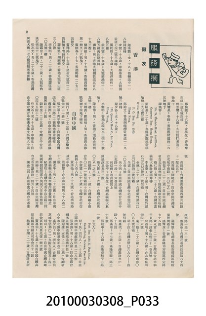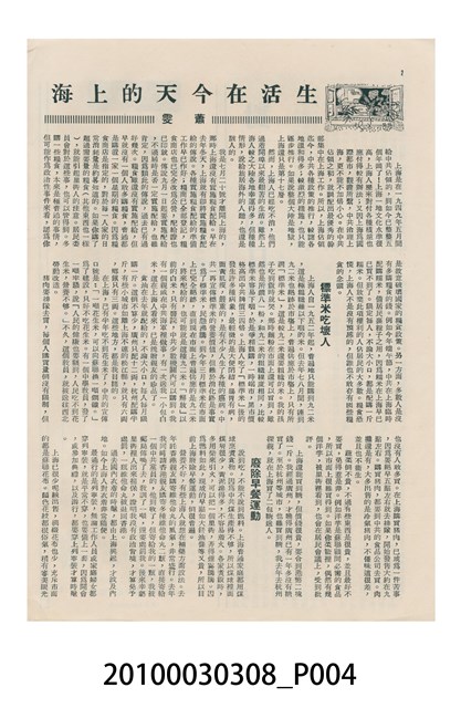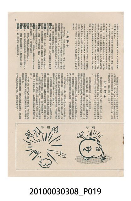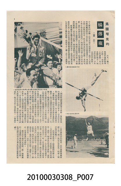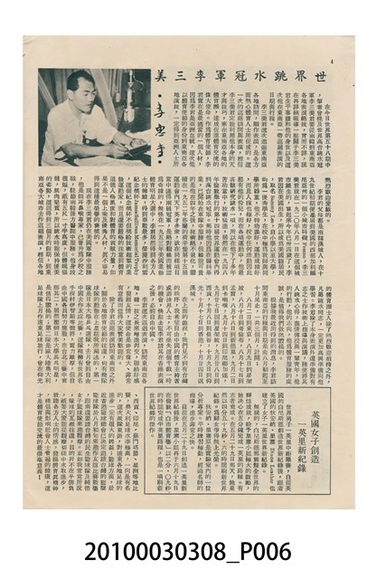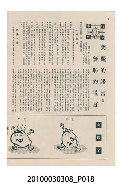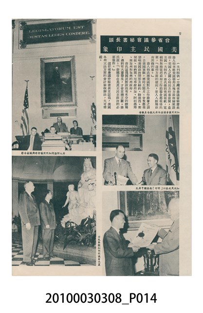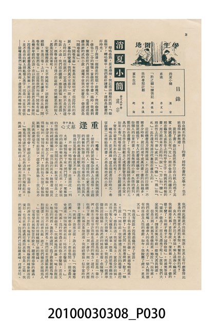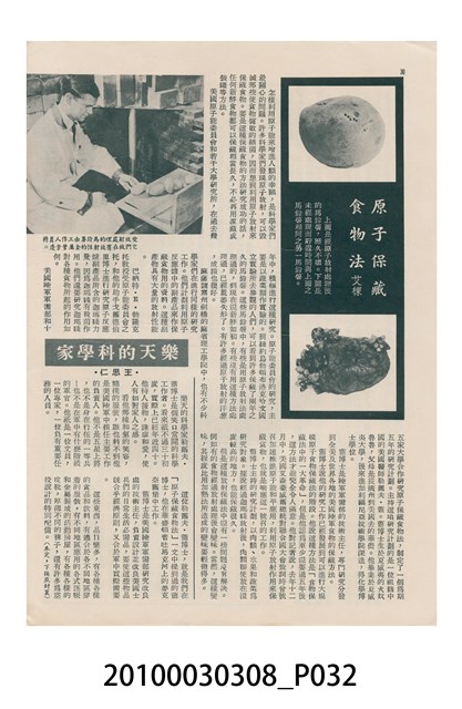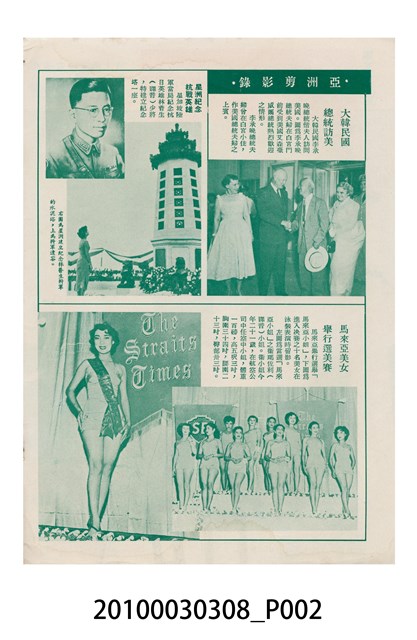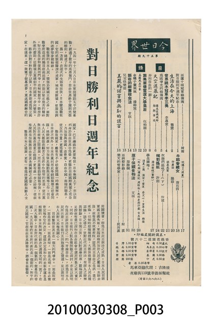 1.本物件為美國新聞處編印《今日世界》第59期,包括「生活在今天的上海」、「世界跳水冠軍李三美」、「天空遇暴記」、「旅美華僑當選大學皇后」、「新奇的細菌殺虫法」、「美麗的諾言與無恥的謊言」、「牛郎會織女」、「燭影搖紅」、「原子保藏食物法」等內容。