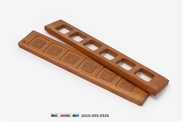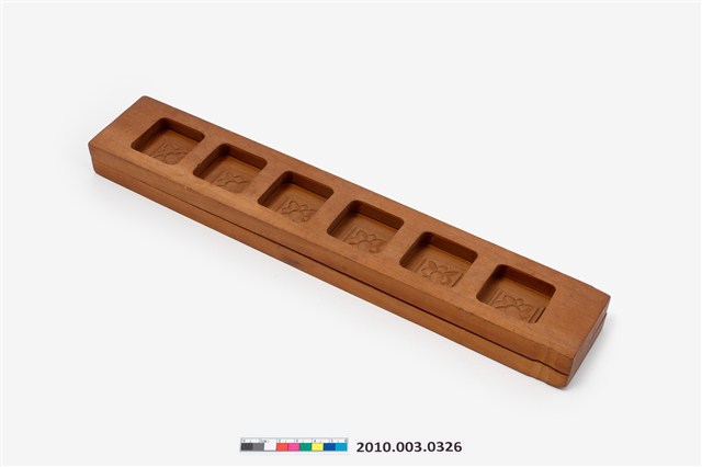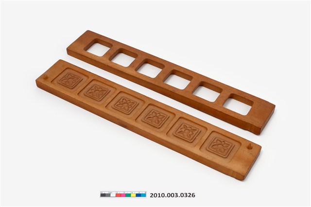 2010.003.0326 長條板六枚長方形花朵紋糕印