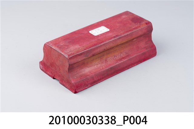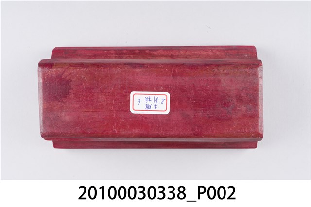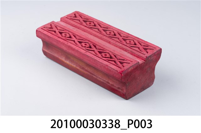 金銀紙在製造時乃先由大捲紙進行平版面的印製,之後再加以裁切,在裁妥各類金銀紙之後,再打上金銀紙側邊的印記。本件為金銀紙邊印,在印刷面刻成菱形紋及花朵紋,在印記上方還刻意刻造出直條凸起及凹槽,方便拿握打印。